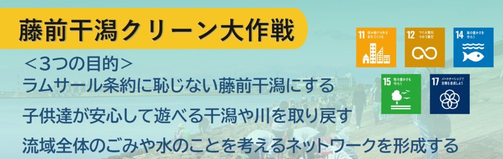 このクリーン大作戦は、ラムサール条約登録湿地である「藤前干潟」周辺のごみを清掃する活動であり、名古屋市港区と飛島村にある「藤前干潟」は、土岐・庄内川と新川、日光川の河口に広がる干潟で、上下流より多くのごみが流れ、漂着します。この藤前干潟でごみを拾うことは、伊勢湾へ、さらにその先の海へ流れ出る海ごみを減らす取組みとなります。